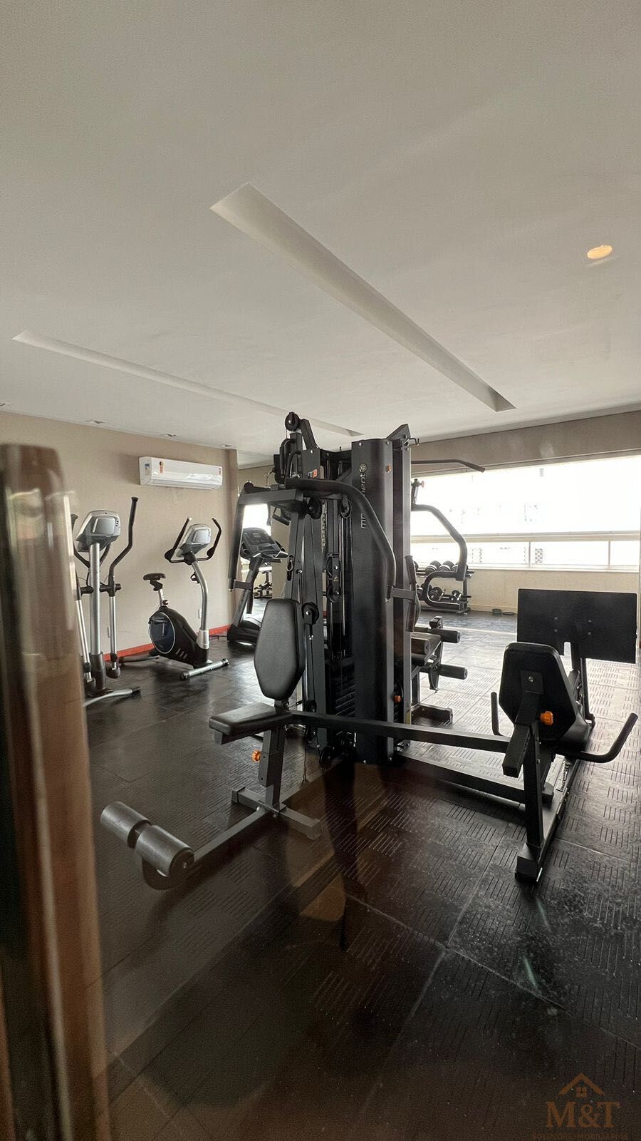 Condomínio moderno com salão de festas, academia, área gourmet, área relax e sauna.