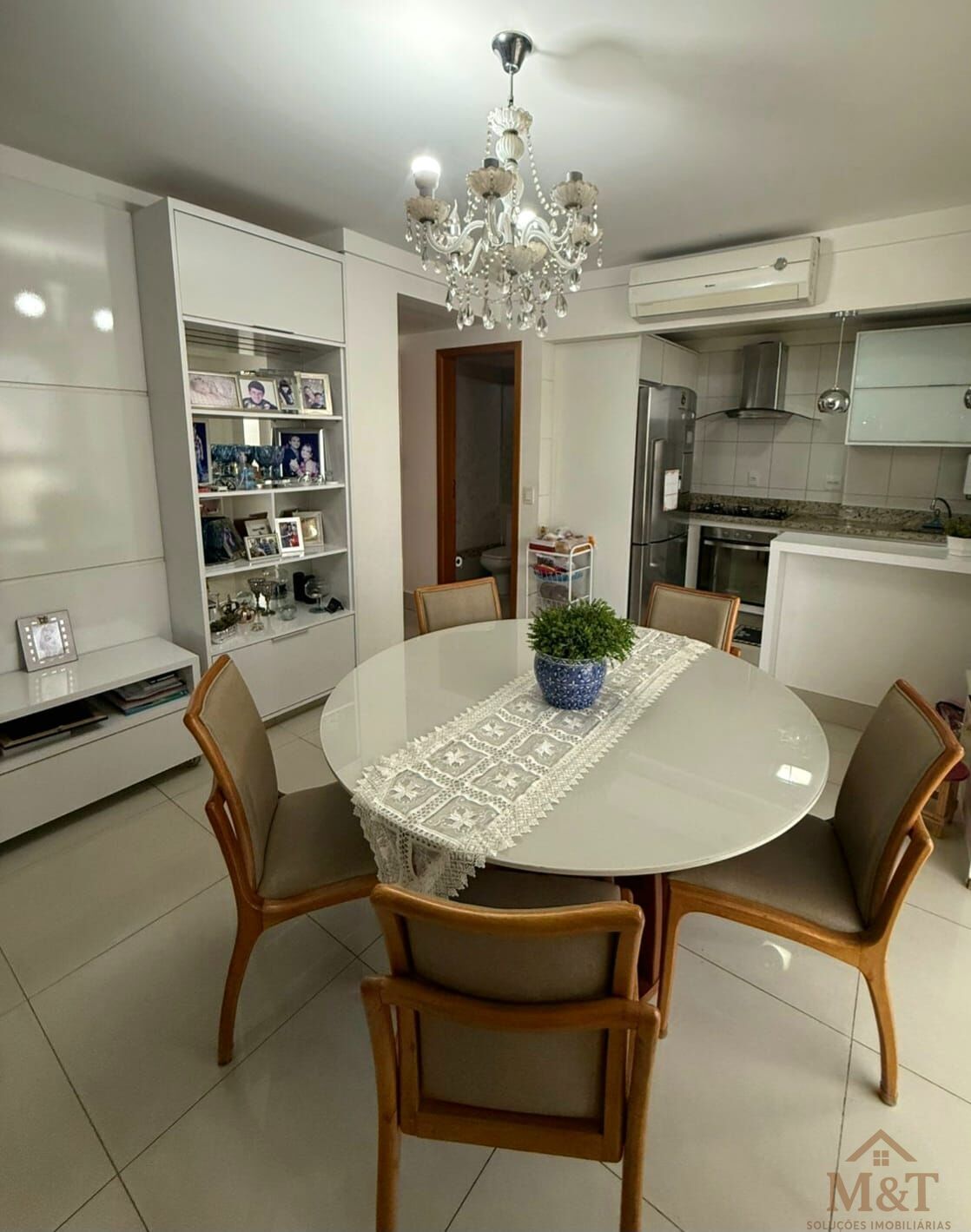 4 aparelhos de ar-condicionado, 3 TVs Samsung, Sofá, Mesa com 6 cadeiras, Coifa Tramontina, Cooktop 5 bocas Brastemp, Forno elétrico Brastemp e Lava-louças 8 serviços Brastemp.